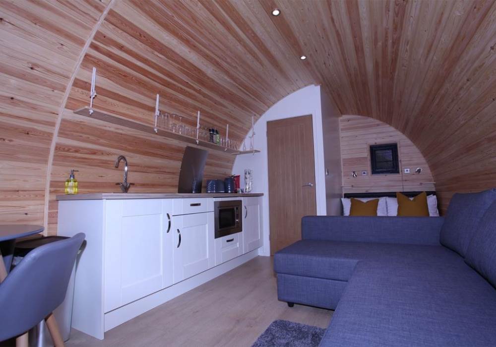 Located in a tranquil valley, your luxury heated pod is fully equipped with a double bed and a sofa bed (suitable for 2 children or 1 adult ). A heated ensuite bathroom with luxury toiletries along with fluffy towels and bathrobes.