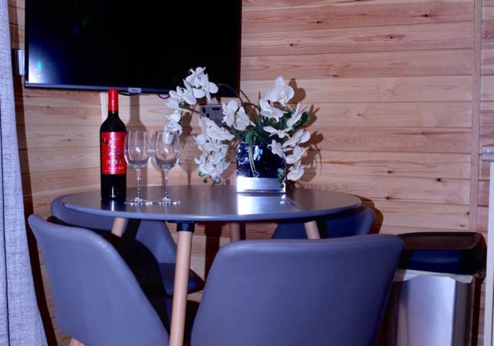 Outside the feeling of being away from it all in the countryside surrounded by nature you have an outdoor table and seating on a large patio as well as your private hot tub allowing you to relax and de-stress.